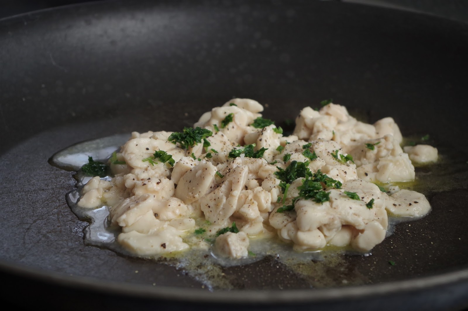 Melt the margarine in a large pan, add the cod roe, salt, pepper and chopped parsley...