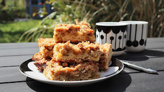 Here I baked a recipe for a delicious Icelandic sheet cake with oat crumbles and fresh rhubarb. It's nice to have fresh cake in the sunshine in the garden, don't you think?!?